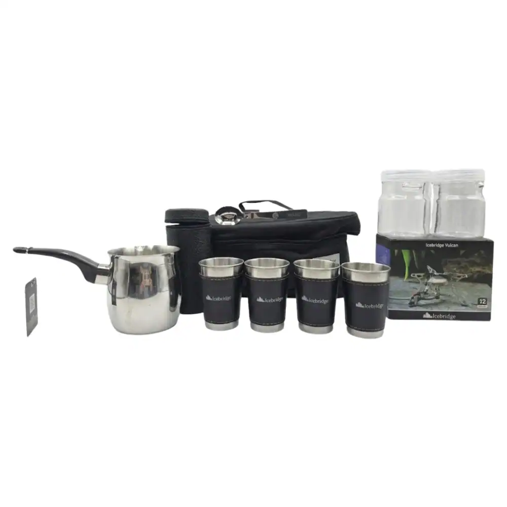 ערכת קפה תבור מבית ICEBRIDGE מותאמת למומחי קפה ולחובבי הטבע שאינם מוותרים על חווית שתייה איכותית בשטח. בערכה תמצאו ראש גזייה ספיידר מתברג מהדגם “VULCAN”, אשר מספק הרתחה מהירה ביותר בכל תנאי, כולל בתנאי רוח קשים, בזכות הרגליים שמאפשרות הנחה ישירה על הקרקע ליציבות מרבית. חומרי התיק כוללים בד אוקספורד עמיד והוא בעל מידות נוחות לנשיאה ואחסון. הערכה כוללת כלים נלווים כגון כוסות נירוסטה בעלות דופן כפולה, צנצנות לאחסון קפה ותה, וכפית מתקפלת להגשה נוחה.